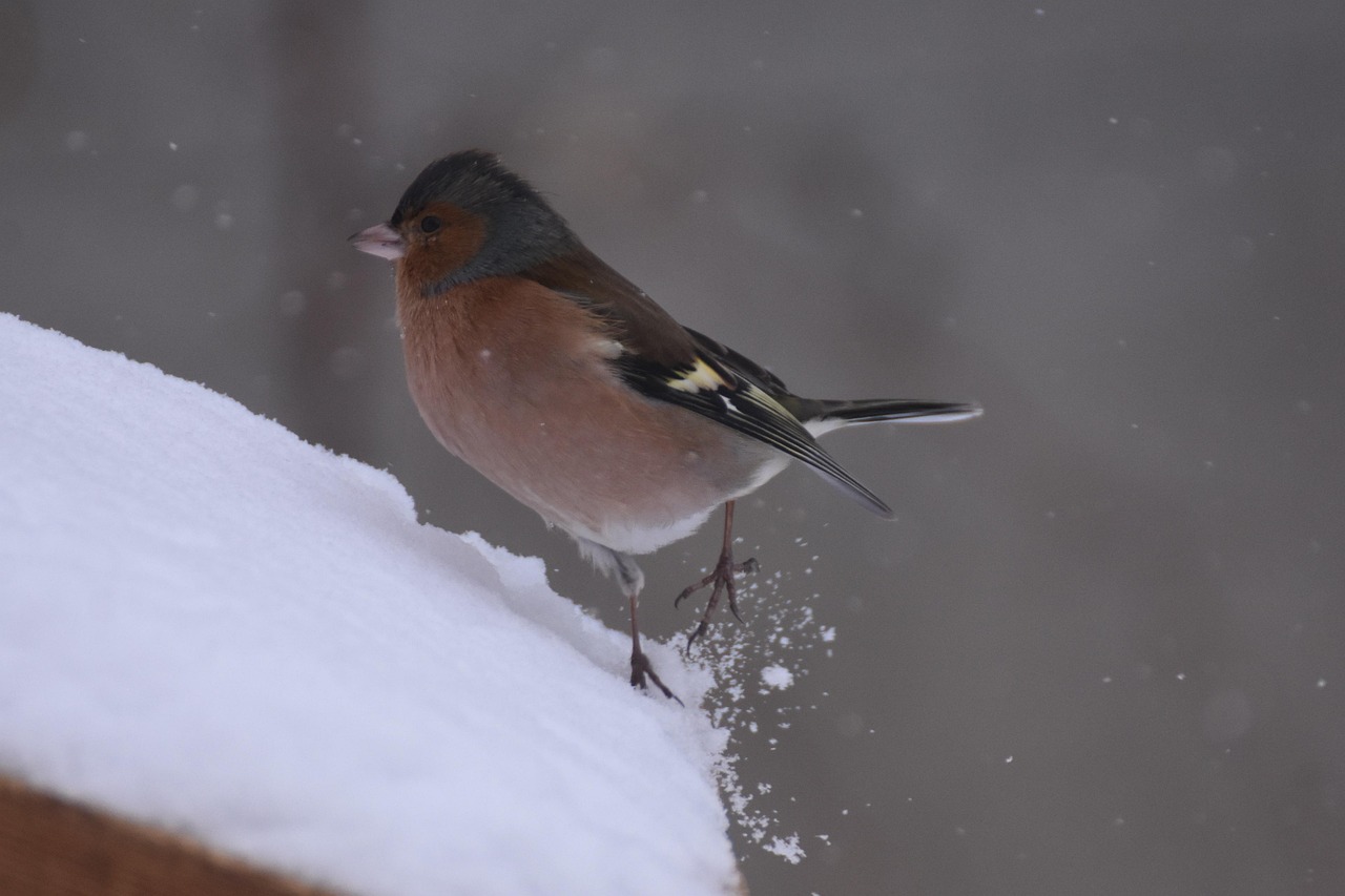 Le Pinson des arbres (Fringilla coelebs) est une espèce très répandue en France, observable toute l’année, y compris en hiver. Le mâle se distingue par sa tête bleu-gris et sa poitrine rosée, tandis que la femelle est plus discrète. Il affectionne particulièrement les graines tombées au sol et peut aussi fréquenter les mangeoires, surtout dans les zones boisées ou bocagères.
